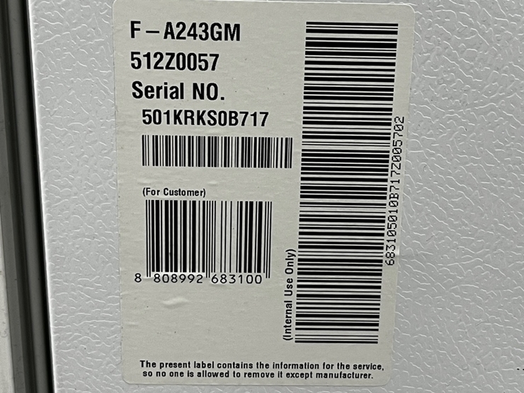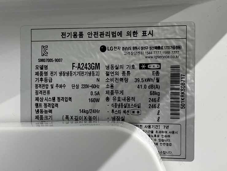 . Maker : LG ÀüÀÚ . Model : F-A243GM . Å©±â : W550 X D580 X H1810 mm . À¯È¿¸éÀû : 246 ¸®ÅÍ