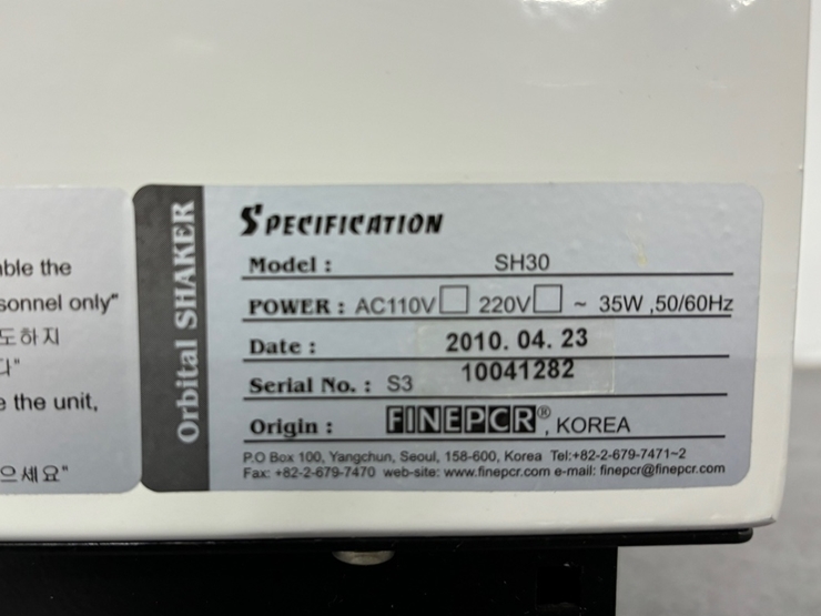 . Maker : Finepcr . Model : SH30 . Max.RPM : 300 . Power : AC220V . Plate Size: 300 X 300 mm . ±¸ÀÔ°¡ : 100 ¸¸