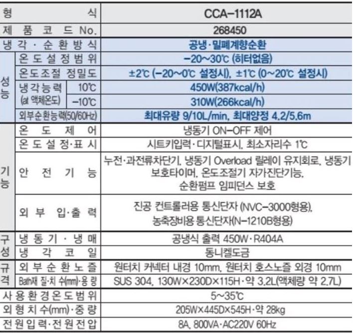 . Maker : Eyela . Model : CCA-1112A . -20 ~ 30¡É degree . ¼øÈ¯¹æ½Ä : ¹ÐÆó°èÇâ¼øÈ¯