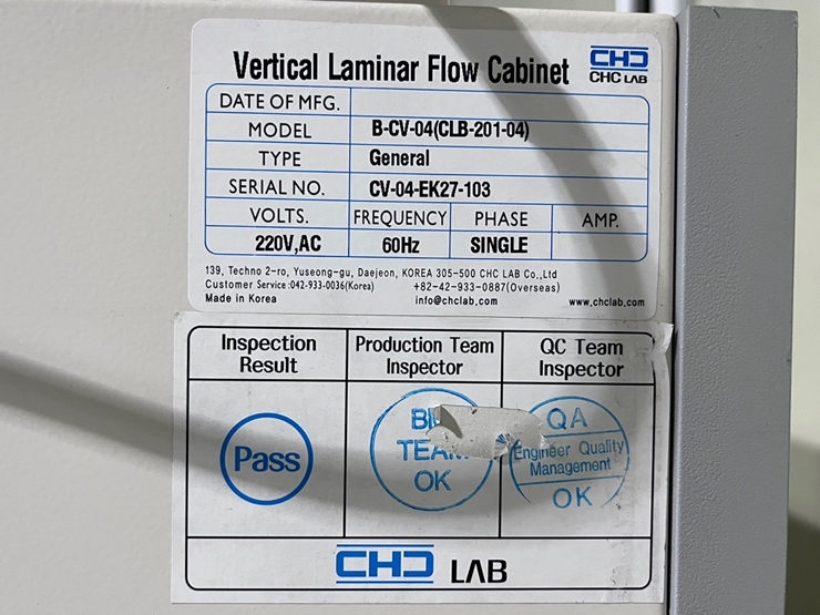 . Maker : CHC . Model : B-CV-04(CLB-201-04) . ¿ÜºÎÅ©±â : w 1350 X d 750 X h 1950 mm . ³»ºÎÅ©±â : w 1220 X d 620 X h 560 mm