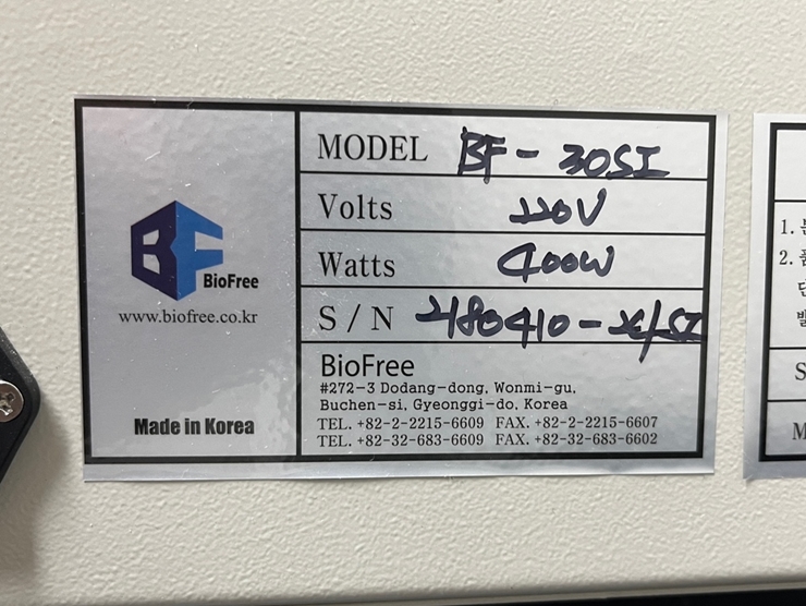 . Maker : Biofree  . Model : BF-30SI  . Speed range : 0 ~ 300 RPM  . Temp. range  : ambient +5¡É ~ 65¡É  . Capacity : 61 Liter  . ±¸ÀÔ°¡ : 220¸¸¿ø