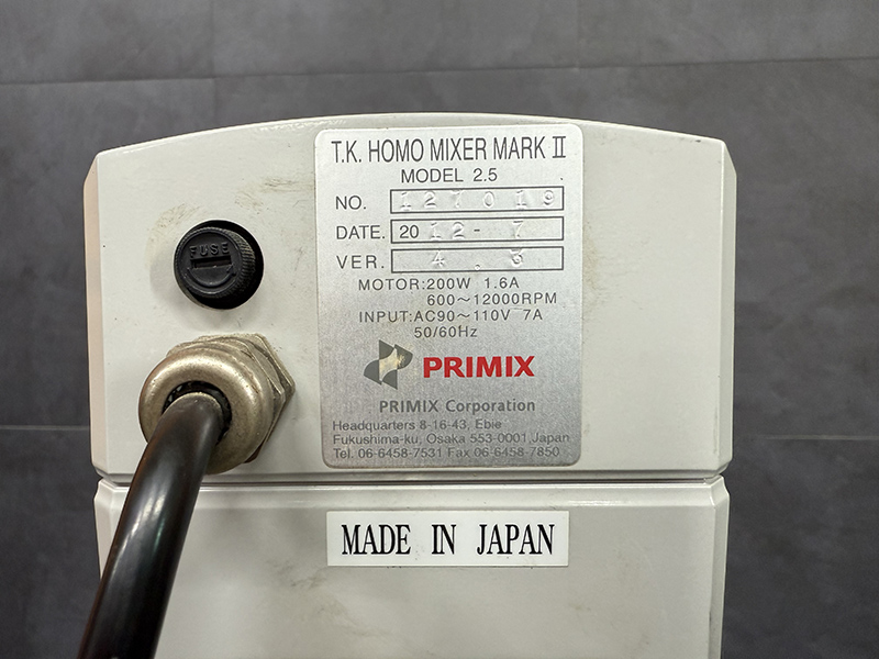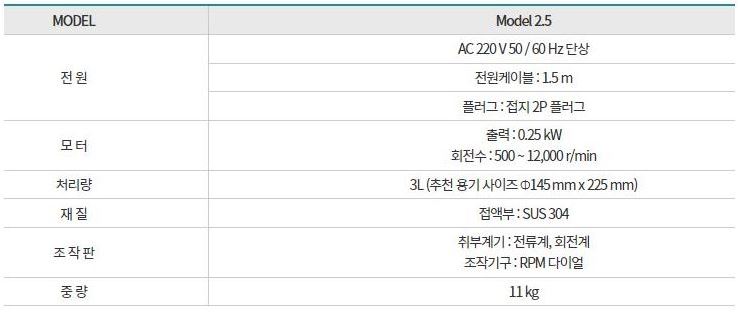 . Maker : PRIMIX  . Model : MARK II 2.5  . Motor : 600~12000 rpm  . Capacity : 3 L  . Àü¿ø : 110 º¼Æ® (Æ®·£½º Æ÷¸Ó Á¦°øÇÔ)