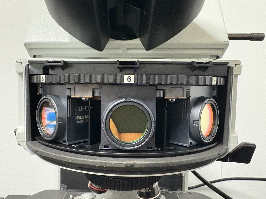 . Maker : OLYMPUS  . Model : BX53F  . 20x / Dapi  . ´ë¾È·»Áî 10¹è  . ´ë¹°·»Áî : 4 X, 10X, 20X, 40X, 100X (ÃÖ´ë 1000¹è)  . DIC filter, U-Dict, Fl filter  .  ÇÊÅÍ : U-FUW / UV,  U-FBW / blue, U-FGW / green