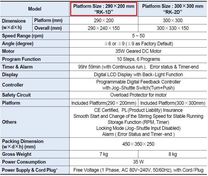 . Model : RK-1D  . Å©±â : w290 x d200 mm