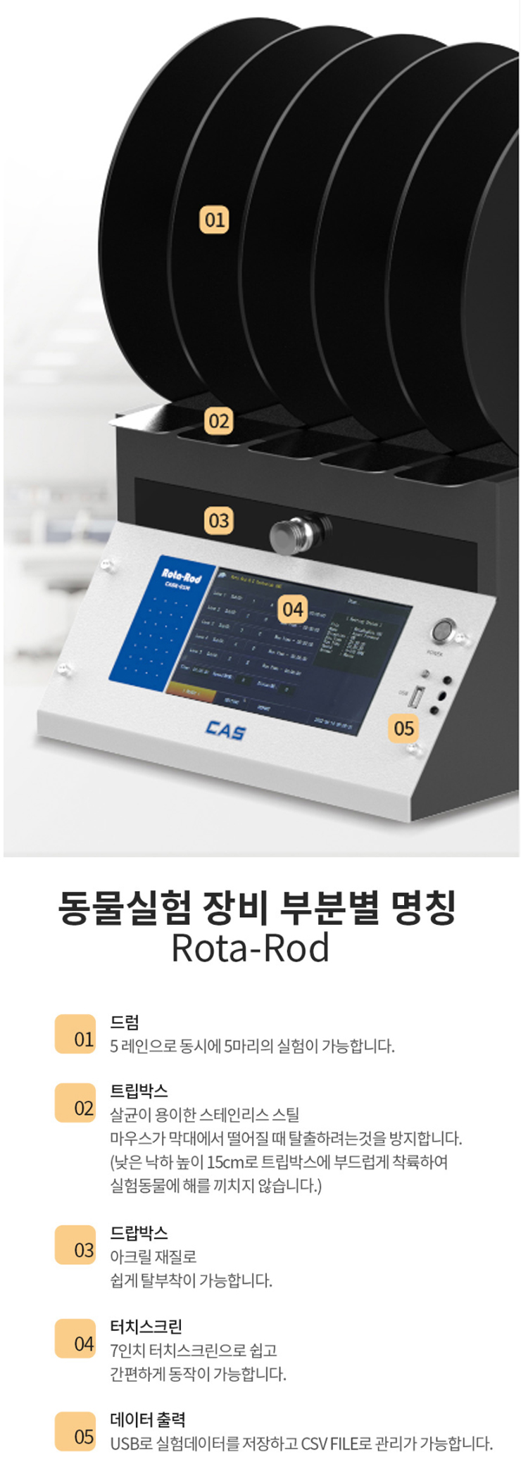 Rota-Rod´Â ¿îµ¿ Àå¾Ö³ª ³ú ¼Õ»ó ¿¬±¸ ¾à¹°ÀÇ ½ºÅ©¸®´× µî µ¿¹°½ÇÇè¿¡ ¾²À̸ç,  ½ÇÇ赿¹°ÀÌ µå·³¿¡¼ ¾Æ·¡ÀÇ Æ®¸³ ¹Ú½º·Î ¶³¾îÁö¸é ¼¾¼¸¦ ÅëÇØ ½ÇÇèµ¥ÀÌÅ͸¦  ÃÊ ´ÜÀ§·Î ±â·ÏÇÕ´Ï´Ù.