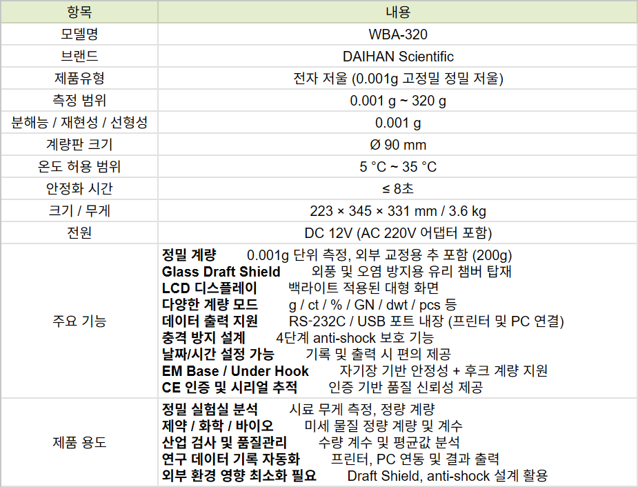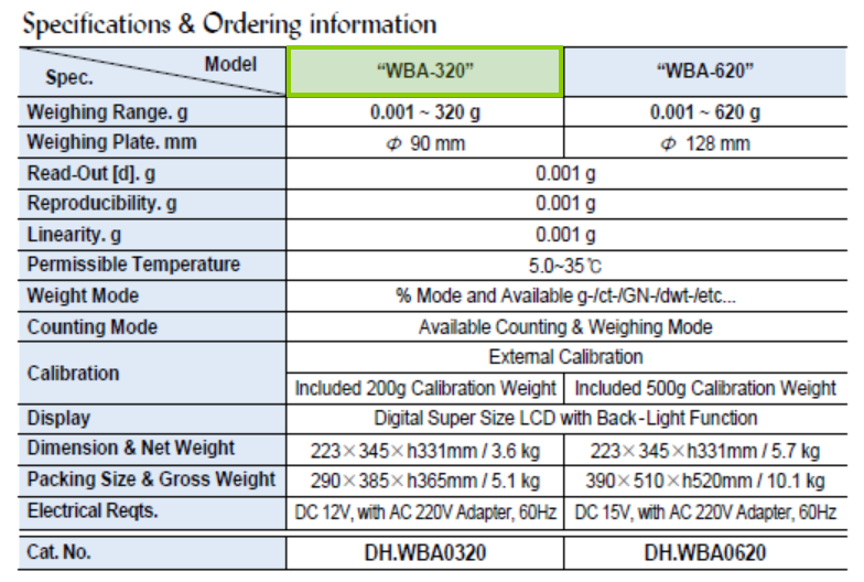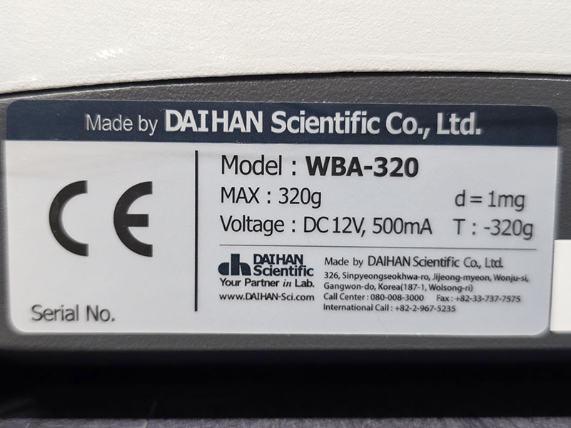 . Maker : DAIHAN  . Model : WBA-320  . Max 320g, d = 0.001g
