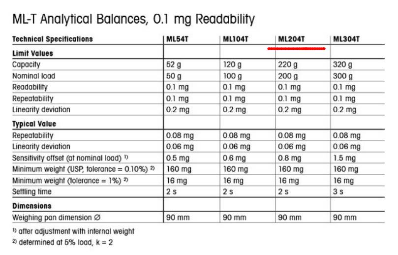 . Á¦Ç°¸í : Mettler Toledo ML204T / Mettler Toledo (¸ÞƲ·¯-Åä·¹µµ) . ÃÖ´ë Ãø·® ¿ë·® : 220 g . ÃÖ¼Ò ´«±Ý (d) : 0.1 mg (0.0001 g) . ³»Àå ±â´É : ÀÚµ¿ º¸Á¤, °è·® ´ÜÀ§ Àüȯ, Åë°è ±â´É, ´ÙÁß °è·® ¸ðµå . µð½ºÇ÷¹ÀÌ : ÅÍÄ¡½ºÅ©¸° (ML-T ½Ã¸®Áî ±âÁØ) . Æ®·¹ÀÌ ÀçÁú : ½ºÅ×Àθ®½º ½ºÆ¿ . ¾ÈÁ¤¼º : °úºÎÇÏ ¹æÁö, ÀÚµ¿ ¿µÁ¡ Á¶Àý ±â´É Æ÷ÇÔ . Á¦Ç° Ư¡ : 0.1 mg ºÐÇØ´ÉÀÇ °íÁ¤¹Ð ÀüÀÚÀú¿ï, ½ºÀ§½º Mettler Toledo ºê·£µåÀÇ Á¤¹Ð¼º°ú ½Å·Ú¼º 		  °ß°íÇÑ µðÀÚÀΰú Á÷°üÀûÀÎ »ç¿ëÀÚ ÀÎÅÍÆäÀ̽º, ´Ù¾çÇÑ »ê¾÷ ¹× ¿¬±¸ ºÐ¾ß¿¡¼ Æø³Ð°Ô »ç¿ë