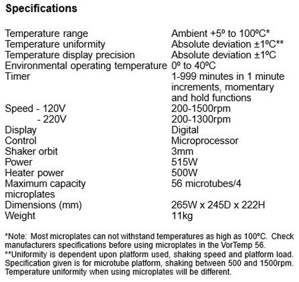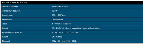 . Á¦Á¶»ç : Labnet  . ¸ðµ¨ : Vortemp 56  . »óÅ : Áß°í  . ȸÀü ¼Óµµ : 200 ~ 1300 RPM  . ȸÀü ¹Ý°æ : 3 mm  . ¿Âµµ : »ó¿Â ~ 99 µµ  . Á¦Ç° Å©±â : 230(W) x 310(D) x 230(H) mm  . ¹« °Ô : 11Kg